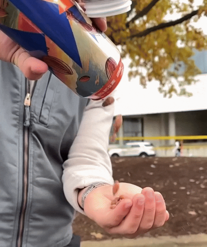 So we combined the two things that college kids love the most. Beer and snacks. That’s why we made the Tallmond boy. A 24 ounce Tall boy can of beer, that has no beer at all. It’s filled with Almonds.